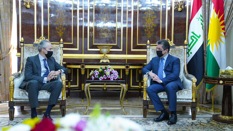 استقبل رئيس حكومة إقليم كوردستان مسرور بارزاني، اليوم الخميس 23 أيلول (سبتمبر) 2021، السفير الإسباني الجديد لدى العراق بيدرو مارتينيز أفيال.