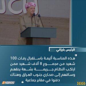 فى الذكرى ال39 ..الزعيم مسعود بارزانى يخرج عن السجادة الحمراء حزنا على أنفلة ثمانية آلاف بارزاني